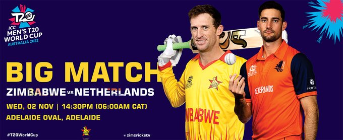 ESPN ICC Mens T20 World Cup. The Zimbabwe vs Netherlands T20 World Cup 2022 match will take place at the Adelaide Oval on November 2. Zimbabwe have the opportunity to boost their chances of.